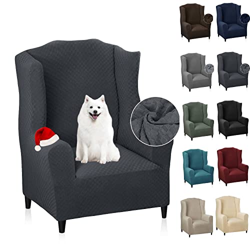 ELEGANT DESIGN - Crafted from newest jacquard knitted fabric embellished with three-dimensional large checks, the anti-slip wingback chair covers looks upscale and stylish, provides decorative purpose to your wingback chair and living room! Our fabric adopts the most advanced active printing and dyeing technology, so the color is more vivid, no fading, no pilling, and wrinkle free, healthy and skin-friendly material is the best choice for families with kids