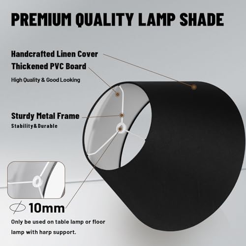 Note: Watch video before buying, This lampshade can only be used on table lamps or floor lamps with harp support, Lampshade installation type: Spider mode, easy to use, but before buying, please make sure your fixture is Spider and has Harp, otherwise you need to buy Harp to use this shade.7 inch top diameter,13 inch bottom diameter,7.8 inch tall; 0.4 inch spider diameter