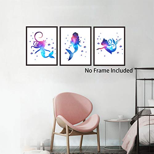 Mermaid Poster Set of 4 Mermaid Watercolor Print Mermaid Wall Art Girls Bathroom Decor Art Kids Room Wall Decor (UNFRAMED)