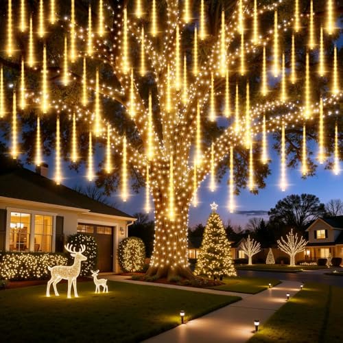 ???????????????????????????????????????? ???????????????????????? ???????????????????????? ????????????????????????:The 24.6FT meteor shower lights have super bright 480 LED, 20 picies16 inches tubes, which effect with a Romantic Aesthetic, The light of every tube turns on and out one by one in sequence and quickly just like a meteor shower or falling snow night sky, these falling rain lights can add amazing cascading effect for patio, garden, lawn, tree, holiday decoration