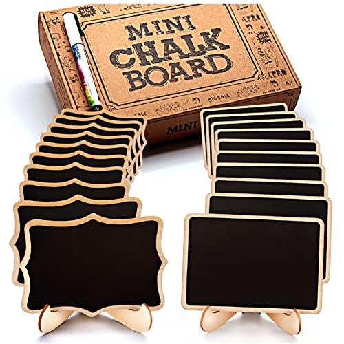 Mini Chalkboard Signs, 20 Pack Framed Small Chalkboard Labels with Easel Stand, Wooden Blackboard for Table Numbers, Food Signs, Wedding Signs, Message Board, Place Cards and Event Decorations
