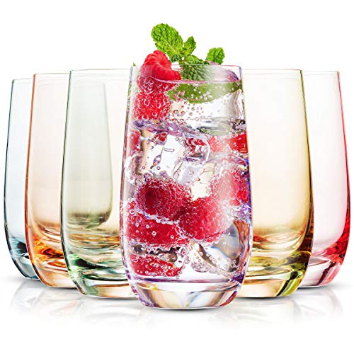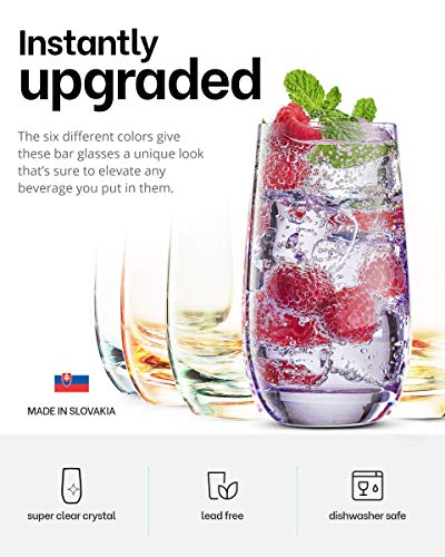 ???? ELEGANT GLASSES WITH A TOUCH OF FLAIR – These highball glasses have a sharp, classic shape combined with a modern, colorful twist. The Collins glasses are carefully crafted from lead-free crystal and come six to a set.
