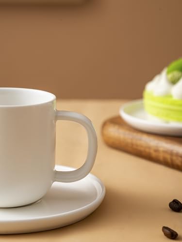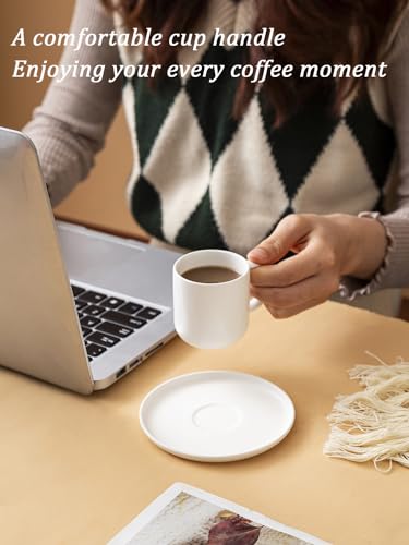 MIUFA Set of 4 Espresso Cups And Saucers In Stronger Porcelain 3.5oz,Mini Coffee Mugs Demitasse Cups