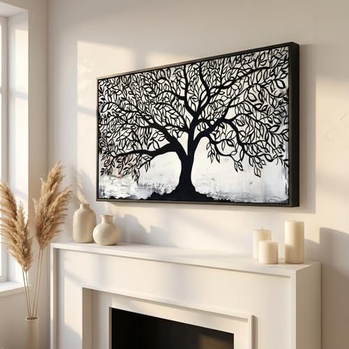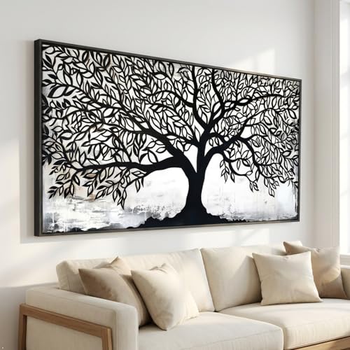 MooMel Wall Art Tree of Life Black and White Abstract Wall Art Canvas Painting for Living Room Bedroom Dining Room Home Office Decor Large Framed Ready to Hang 20"x40"