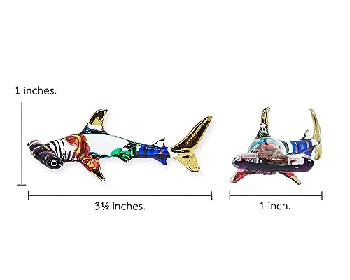 Mr_air_thai_Glass_Blown Tiny 3½" Long Multicolor Gold Dotted Hammerhead Shark Figurine - Miniature Hand Blown Glass Animal Colorful Marine Sea Fish Crystal Decorative Collectible Figurines Décor Gifts