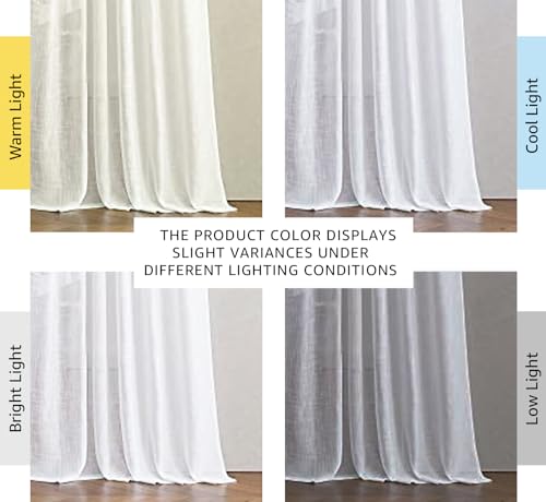 NICETOWN White Linen Sheer Curtains and Drapes 84 inches Long, Rod Pocket & Back Tab semitransparent with Light Through Vertical Window Treatments for Sliding Glass Door & Living Room, 52"W, Set of 2
