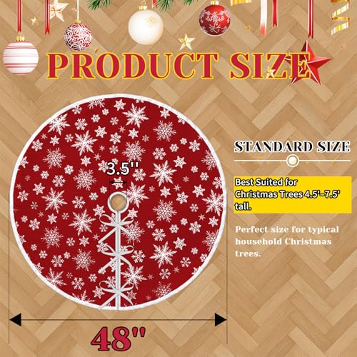 Perfect Size for Your Christmas Tree: This snowflake christmas tree skirt measures 48 inch, the inner diameter is 3.5 inch, fit for most size christmas tree, 3 ropes at the opening to secure Xmas tree skirt around the Christmas tree. The 48 inch christmas tree skirt also providing the nice hiding spot for tree stands and adding a festive touch with space for gifts You can put your favorite gifts on the tree skirt to add more festive atmosphere