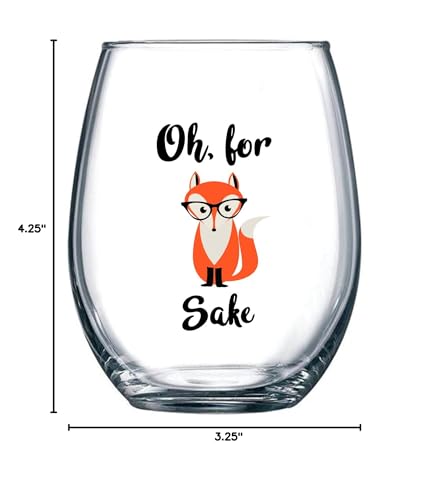 Oh, For Fox Sake 15 oz Stemless Funny Glass - Unique Themed Birthday Gifts For Men, Women, Him or Her - Perfect Idea For Office Coworker and Best Friend