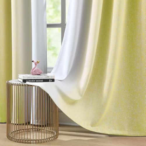 Ombre Yellow Full Blackout Curtains for Girls Room Gradient Pure White to Yellow Energy Efficient Curtain Drapes 52 x 84 Inch Length for Bedroom Window Panels with Grommets Top for Living Room, 2pcs