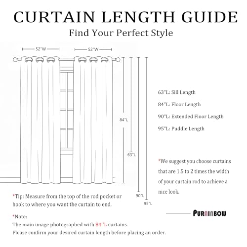 GROMMET TOP DESIGN?8 silver grommets window curtains fit any standard or decorative curtain rods up to 1.6" in diameter. The grommet top design ensures easy installation and smooth sliding, making them a convenient and stylish choice for your window treatments.