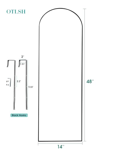 Otlsh 14"×48" Door Mirror,Arched Full Length Mirror, Over The Door, Arch Wall Mirror, Thin Frame, Aluminum Alloy, for Bedroom, Living Room, Entryway -Black