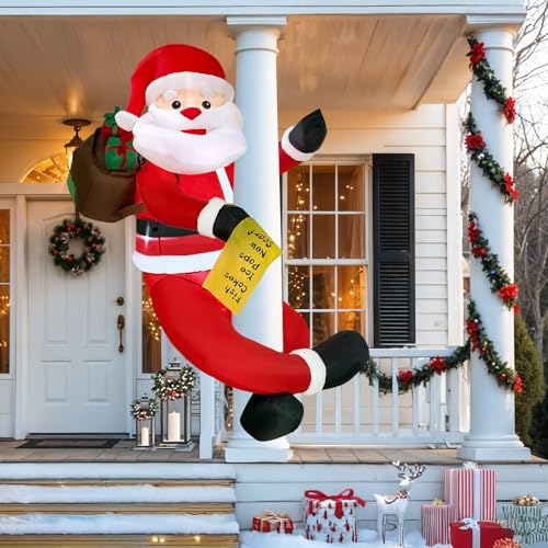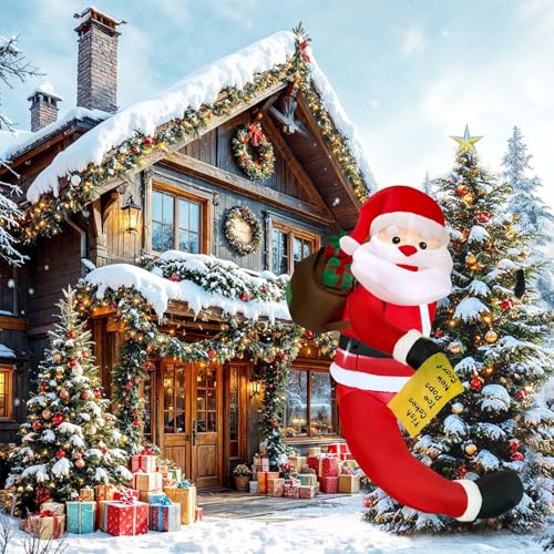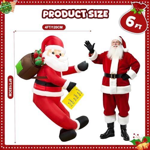 Funny Christmas decorations: The 6 FT Christmas inflatables Santa presents a unique and captivating design. Climbing Santa Claus is hugging a tree posture with a gift bag on his back, bringing the strongest and most cheerful Xmas atmosphere. This unique design will bring endless surprise and joy to your family and will also provide you with a beautiful and unforgettable Xmas holiday experience