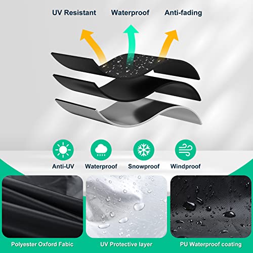 Weather Protection: With PU waterproof coating and UV protective layer, the patio furniture set cover safeguard against sun damage, heavy rain, snow, and ice, preserving furniture color and preventing leakage, thus extending furniture and cushion longevity