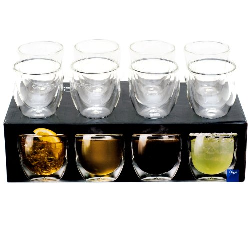 Ozeri Artisan Series 8 oz Beverage Set of 8 Drinking Glasses Moderna Double-Wall Glassware Set, Clear