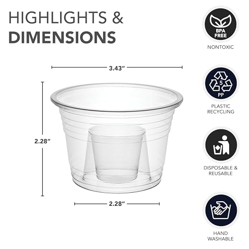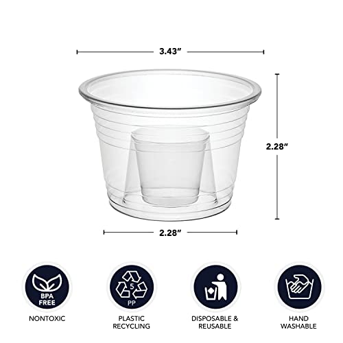 Party Essentials soft plastic bomber cups have a 1-ounce inner cup and a 3-ounce outer cup
