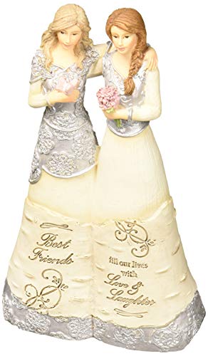 IN-HOUSE DESIGN: "Best Friends Fill Our Lives With Love And Laughter" text is debossed and hand-painted onto the front of the angel, alongside an intricate silver design and flowers.
