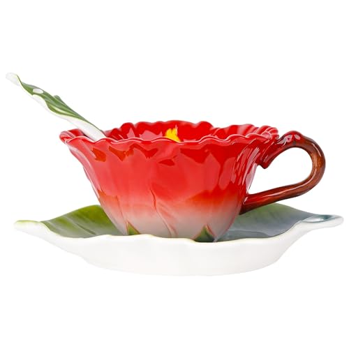 QUALITY MATERIAL: Made of quality porcelain, the hibiscus flower tea cup saucer set can be used for a long time.