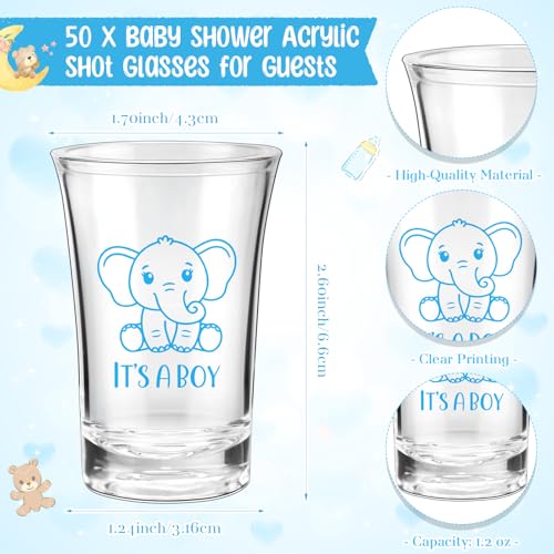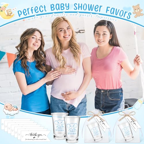 Abundant Quantity and Elegant Combination: this baby shower gift set includes 50 acrylic transparent cups in a boy theme, 50 thank-you tags, 50 transparent organza bags, and a jute twine; With a variety of thoughtfully items, this set is ideal for everyday use and party gifting needs, coming together as a charming and irresistible collection