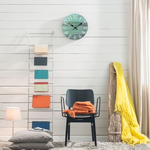 Plumeet Small Wall Clock, 10'' Frameless Wooden Wall Clocks with Silent Quartz Movement, Rustic Coastal Country Village Clocks Decorative for Kitchen Bedroom Living Room, Green