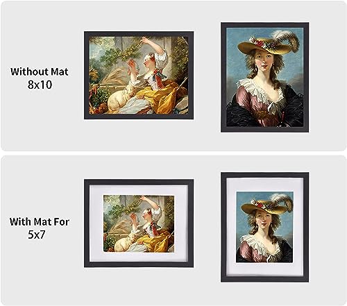 MULTIPLE PHOTOS DISPLAY: Black picture frame which for 5x7 inch pictures with mat or 8x10 without mat, it can turn any photograph, drawing, or portrait into a piece of art!