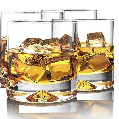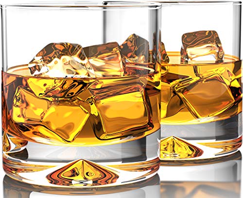 ?CLASSIC DESIGN - Designed with a thick, weighted bottom and to accommodate oversized ice cubes/whiskey stones, your whiskey glasses will hold a full 12 ounces of your favorite drink.