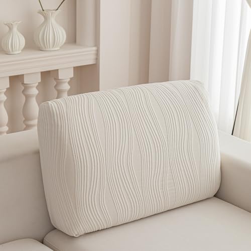 QIANMEW Couch Cushion Covers,Washable Stretch Stripe Sofa Covers for 3 Cushion Couch L Shape Sectional Sofa Slipcovers Furniture Protector for Dog(Back Couch Cover,Ivory)