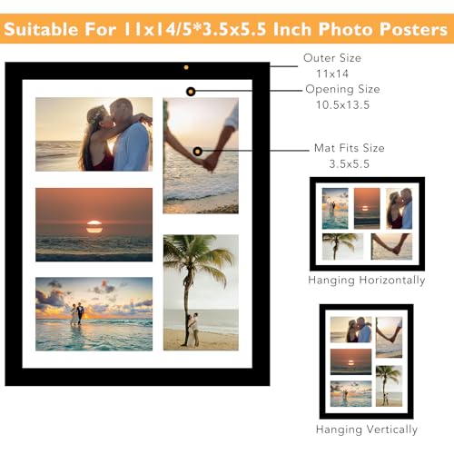 Picture Frame Size: 11x14 collage picture frame fits 5 pcs 4x6 inch or 1 pc 11x14 inch photo picture artwork poster certificate. You can easily load and replace your favorite photos using the swivel clips on the back panel