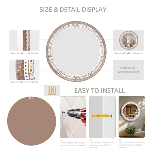 Perfect Size: Reflinto's Large Circle Wall Mirror has an oversized 32"diameter, making it the perfect size for any wall in your house. Use for bathroom mirror, vanity mirror, entry mirror. Bring beauty to your room.