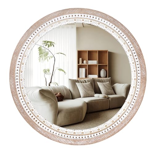 Excellent Quality: this Large Round Mirror use advanced glass and exquisite silver-plating technology, a clear image, the mirror is real and smooth without deformation, plus the retro wooden frame, is beautiful and fashionable.