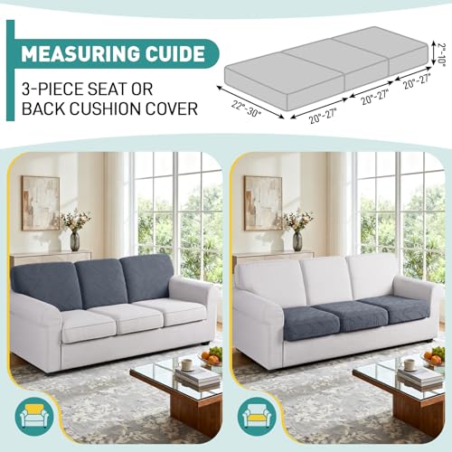 DIMENSIONS GUIDE: 3 pieces cushion covers included. Fits each individual sofa cushion with Length: 21-30 inches, width: 15-23 inches, height: 4-10 inches. Please refer to the measurement guide in photo and measure before purchasing