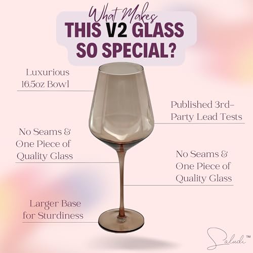 PERFECT FOR ALL WINE TYPES - enjoy your favorite wine in style with Saludi wine glasses - each glass fits a generous 16.5oz (18oz full capacity) and compared to other smaller glass sizes (12-14oz or 360-415mL), the glassware feels grand and perfect in your hand with