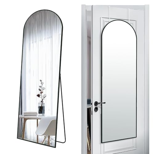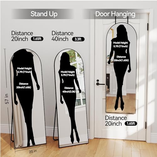 SCWF-GZ 57x20 Door Hanging Full Length Mirror, Floor (Height 5.7ft just Body in1.3ft) or Wall Mounted Metal Frame Arch Dressing Mirrors for Bedroom Bathroom Living Room 57 20 inch Black