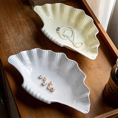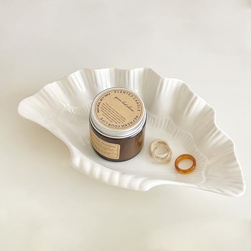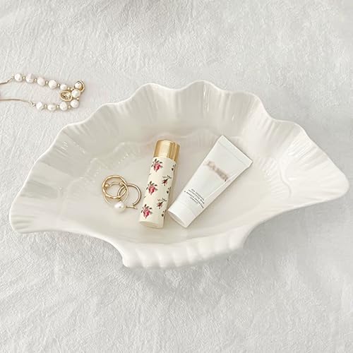 Large Jewelry Tray Dish Size: White ceramic shell tray approximately 10.2 × 5.9 × 2.5 inches(26 x 15 x 6.5cm). The clam shell decorative bowls sufficient for bedroom countertop, coffee table, office desk, night table and any other spaces you want to add vitality. Keep rings, earrings and other small treasures in one place with this trinket bowl. Easy to clean, simply wipe with a damp cloth or rinse with water.