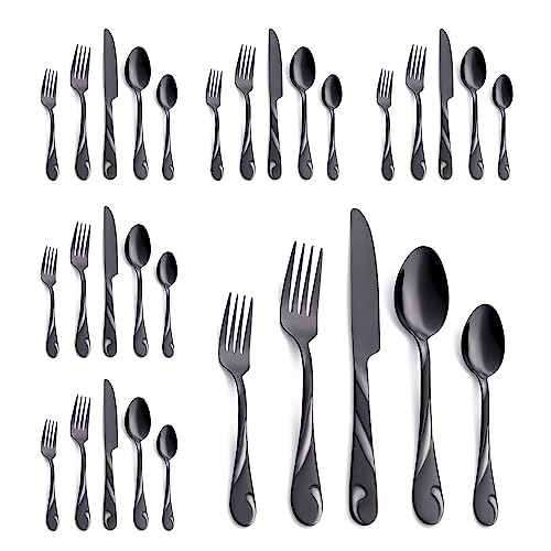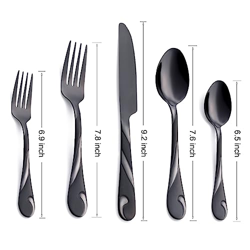 INCLUDE: This Black silverware set contains 6 dinner knives, 6 dinner forks, 6 dinner spoons, 6 salad/dessert forks, and 6 dessert/teaspoons, which are great suitable for everyday use or preparing for dinner or a party and more.
