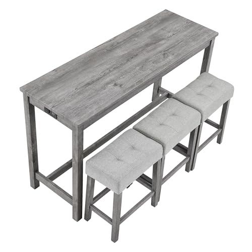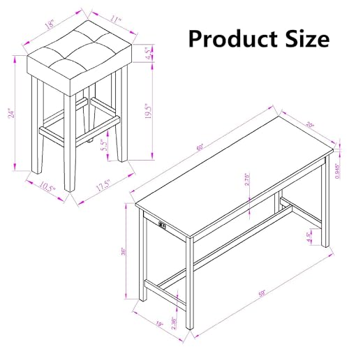 Space Saving and Perfect Fit: Three 18 "long x 11" wide x 24.25 "high bar stools can fit perfectly under the table when not in use, maximizing space while maintaining aesthetics. Foot mats not only increase stability but also prevent floor scratches.