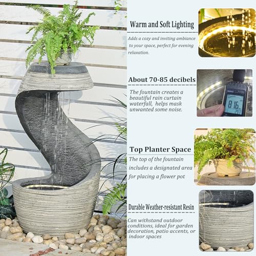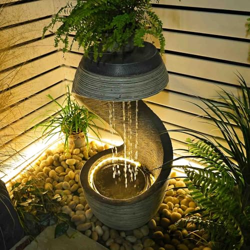 GARDEN WATERFALL FOUNTAIN Aesthetic appeal: LED lights can provide a beautiful and mesmerizing visual display that can enhance the overall ambiance of the fountain. creating a stunning visual experience that is both relaxing and visually appealing.