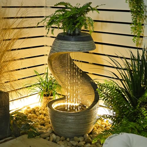 Unique and Elegant Design: The curved waterfall fountain features a distinct and beautiful design that is sure to capture attention and add a touch of elegance to any indoor or outdoor space.modern home decor.