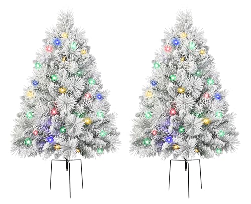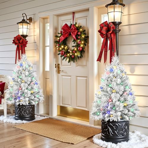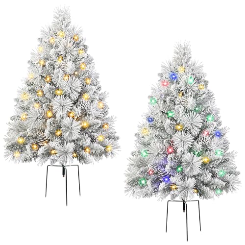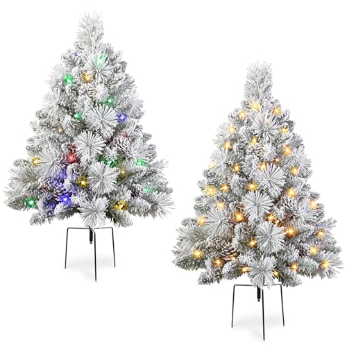 ?????Pre-lit Lights?Each tree is equipped with 40 warm white and colored LED beads, supporting 8 lighting modes such as steady, flashing, and waving, allowing for easy switching with one button. It is a great choice for decorating your porch or yard during Christmas.