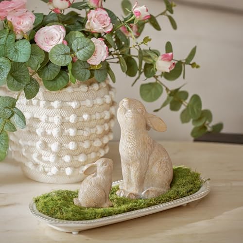 Elegant Set of 2 Easter Bunny Figurines: Enhance your home with this beautifully crafted Set of 2 bunny figurines. Designed with a textured surface in white and khaki, these resin sculptures bring a touch of nature-inspired charm to your spring decor. Perfect for Easter decorations or as a stylish addition to your everyday home decor.
