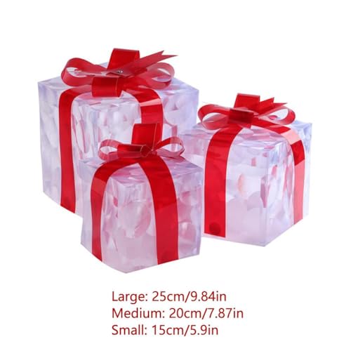 Holiday Light Gift Box Set:Our collection features three sets of ribbon-decorated light gift boxes,each designed with a sturdy plastic frame,and festive red ribbons.These Christmas decoration gift boxes are ideal for holidays including Christmas,wedding,party, Thanksgiving,Halloween,and New Year