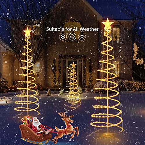 Set of 3 Spiral Outdoor Lighted Christmas Tree, 3/4/6 Feet Christmas Lights with 7" Star Topper, UL Certification Collapsible Spiraling Tree Light Kit for Xmas Patio Wedding Decoration, Warm White
