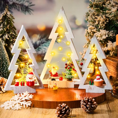Quality Wood: LED wooden Xmas tree table decoration is made of wood, solid, with smooth surface, not easy to fade, deform or break; The lighted rustic wood Christmas tree are hollowed, surrounded by light strings, bringing more happy atmosphere to you