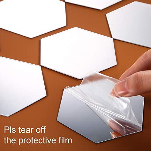 Material: these square with rounded corners mirror wall sticker decal is made of plastic, the surface is reflective and the back has glue itself; The surface has a protective film on it, in order to get better feeling and clear mirrors, please just take it out when you use it