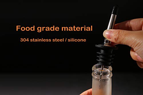 Stainless Steel Liquor Pourers: Made by 304 stainless steel, the liquor pourer is safe and durable for use. The wide range of the silicone stopper is from 18mm to 24mm, which is suitable for most bottle mouths. By using liquor spout, there will be less spillage and less waste.