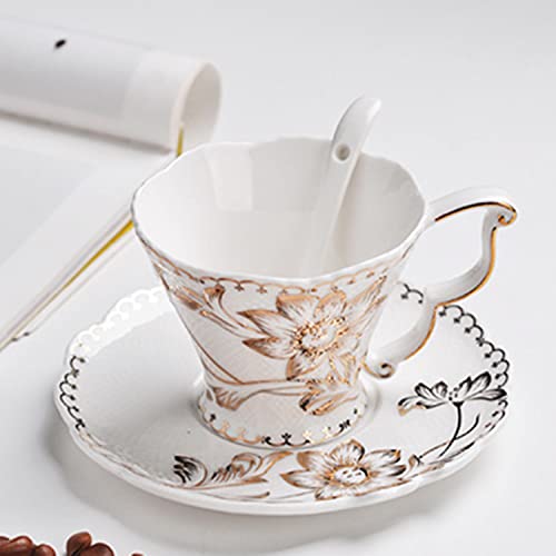 SHZMJL Teacup and Saucer and Spoon Sets?Vintage Bone China Tea Cups?Rose Teacup?Rose Flower Set 6.8 Oz?Euro Style Bone China Tea Cups and Saucers Set for Tea Party Christmas Gifts (Golden)