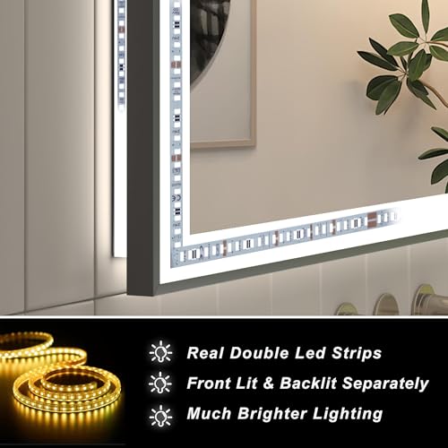 3 Colors Separately Control and Dimmable : There are three color tones for led illuminated mirror (warm white, natural light, and cool white), and each color is dimmable; You can choose to turn on only the back light or front lit or have them both on simultaneously, selecting different lighting effects for different atmospheres, and the last lighting mode will be remembered