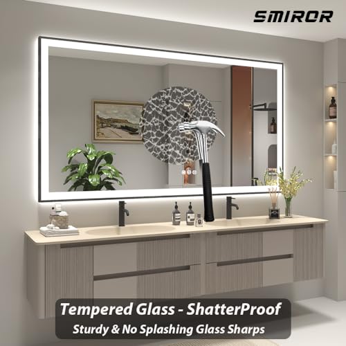 Anti-Fog : Smiror bathroom vanity mirror is clear and fog less after the shower; The defogger automatically turns off after 1 hour, saving energy and preventing accidental operation