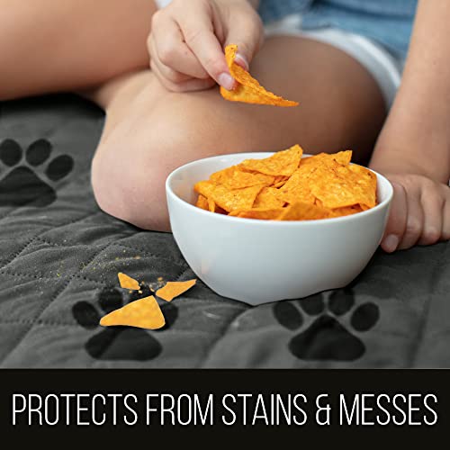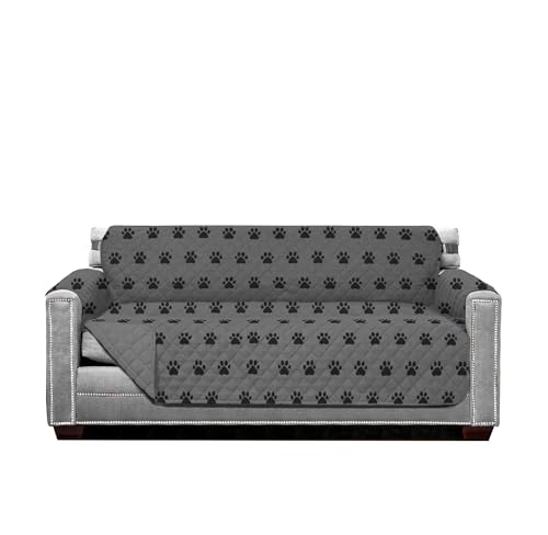 Sofa Shield Couch Slip Cover with Patented Strap, Cushion Protector, Reversible Stain and Dog Tear Resistant Slipcover, Quilted Microfiber 70” Seat, Washable Covers for Dogs Pets Kids, Paw Gray Black