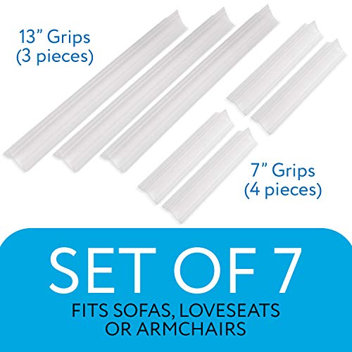 SET OF 7 TUCK GRIPS FOR SLIPCOVERS: Keep your sofa slipcovers neat and tidy with these furniture cover holders. Unlike others, this set includes longer strips: 3 strips 13” long " plus 4 strips 7" long for plenty of heavy-duty tight grip furniture cover grippers.