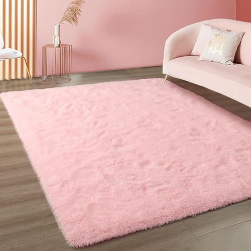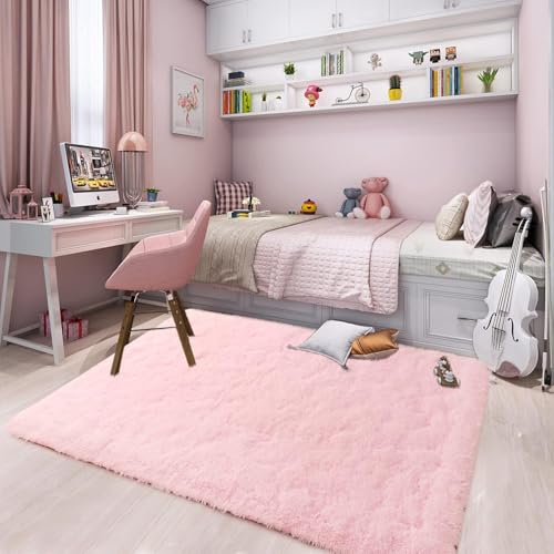 Soft Modern Indoor Large Shaggy Rug for Livingroom Bedroom Dorm Kids Room Home Decorative, Non-Slip Plush Fluffy Furry Fur Area Rugs Comfy Nursery Accent Floor Carpet 6x9 Feet, Pink